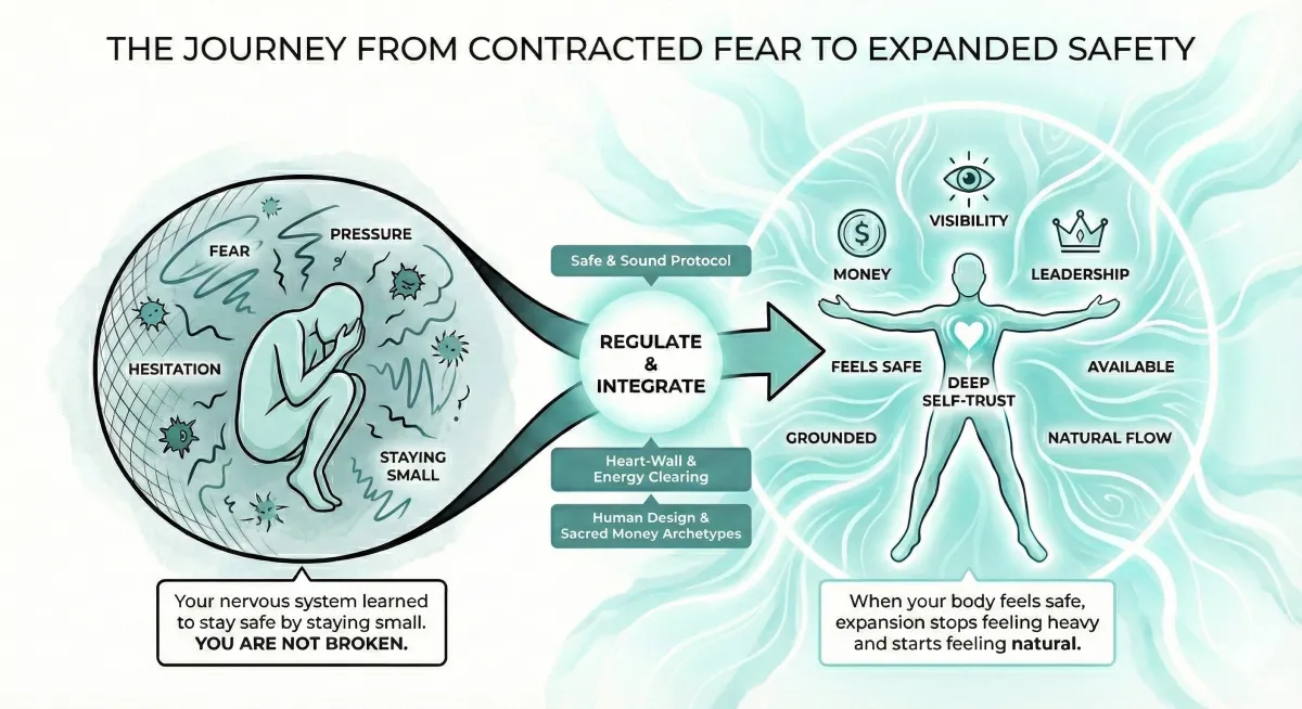When you release trauma and trapped emotions and heal your nervous system, your relationship with money, visibility, and leadership transforms —life becomes easier and peaceful.
